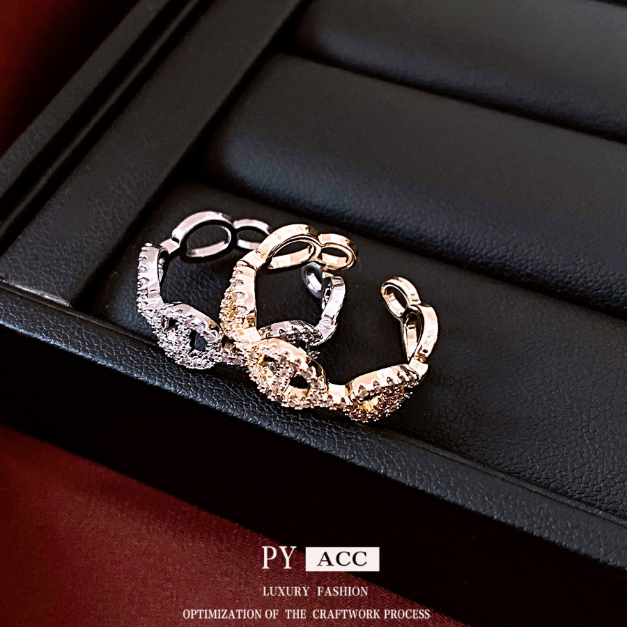 European and american cross-border hot selling niche personality fashion open high sense ring cold wind geometric chain love ring