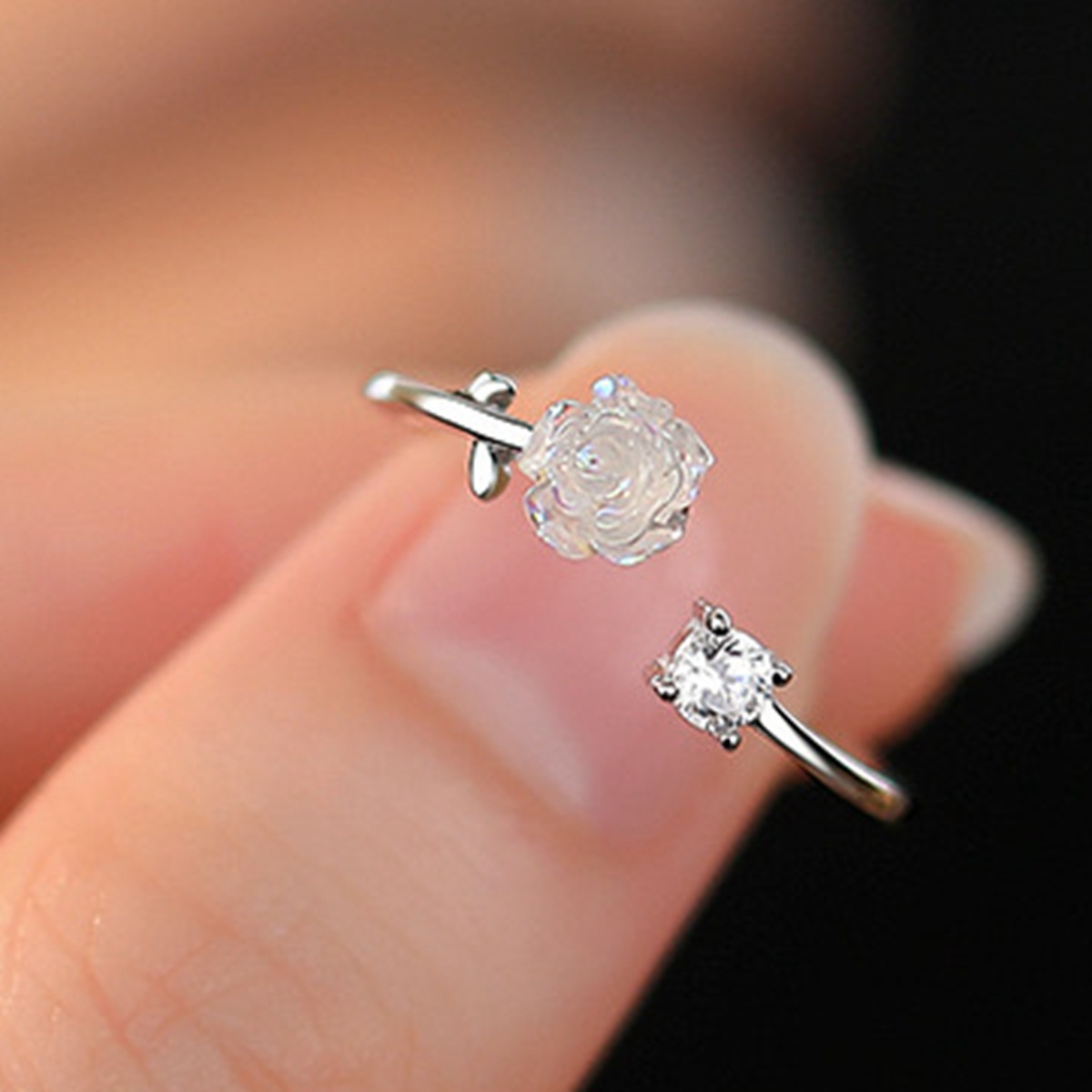 Camellia Open Ring Women's Adjustable Light Luxury Cute Niche Design Advanced Sense Zircon Finger Ring Gift