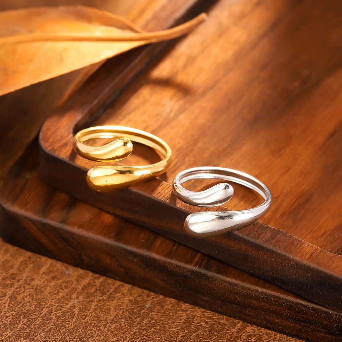 Cross-Border Hot-Selling Non-Fading Ring, Water Drop Open Ring, Personalized Versatile Ring Jewelry, High-End Couple Ring