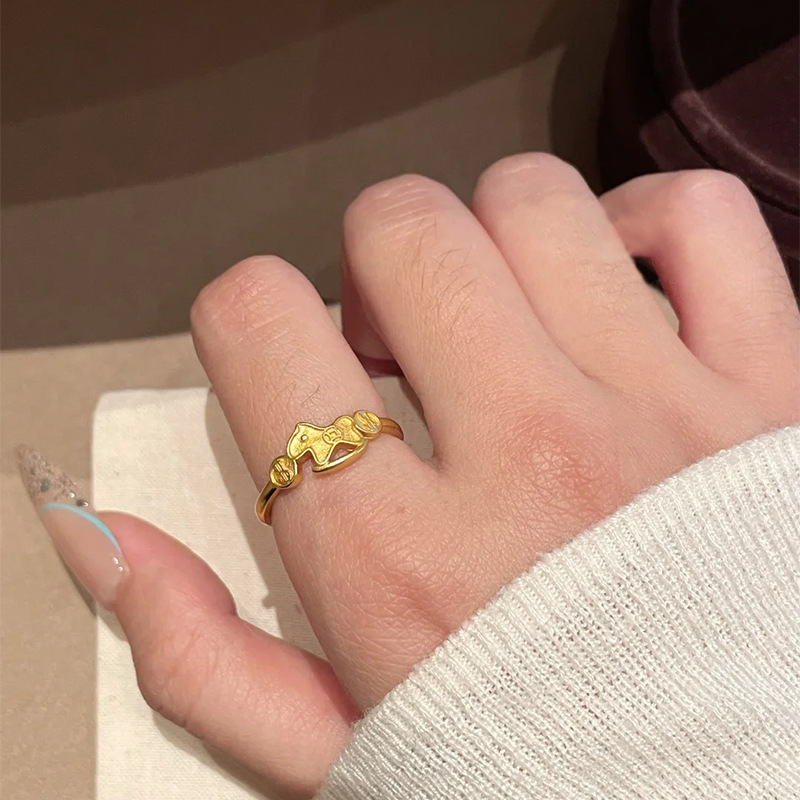 S925 Sterling Silver Pony Coin Ring for Women, High-End, Get Rich Immediately, Open Index Finger Ring, Popular on Xiaohongshu