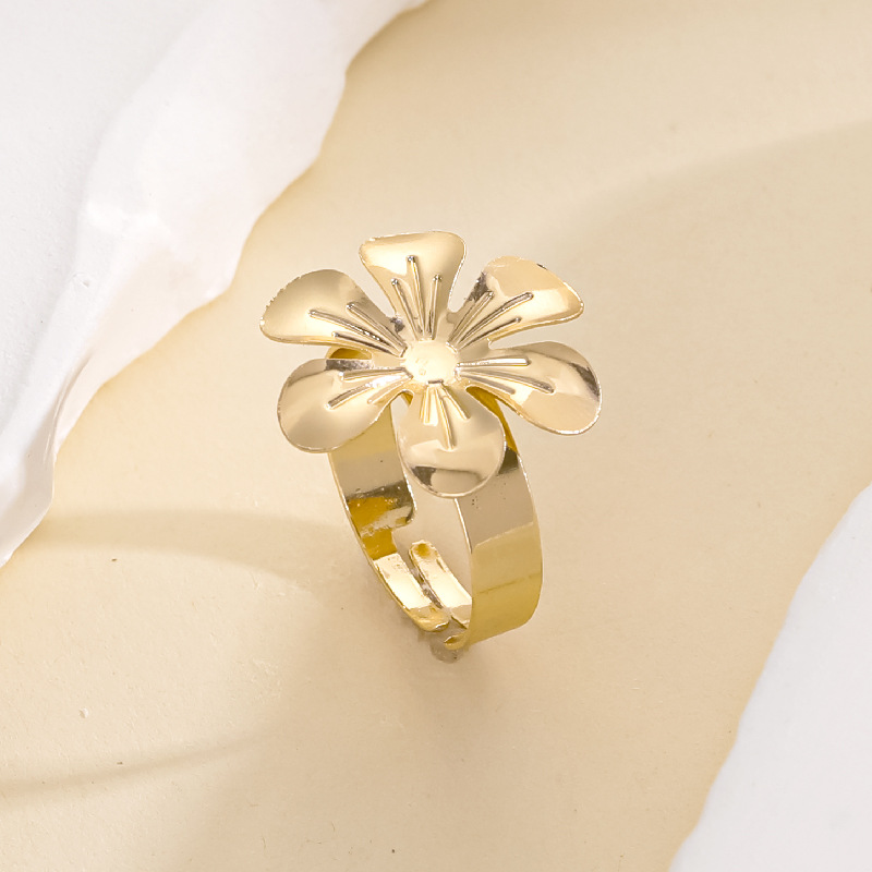 European and American Stylish Exaggerated French High-End Flower Geometric Non-Fading Open Metal Ring Women's Hand Jewelry Wholesale Source