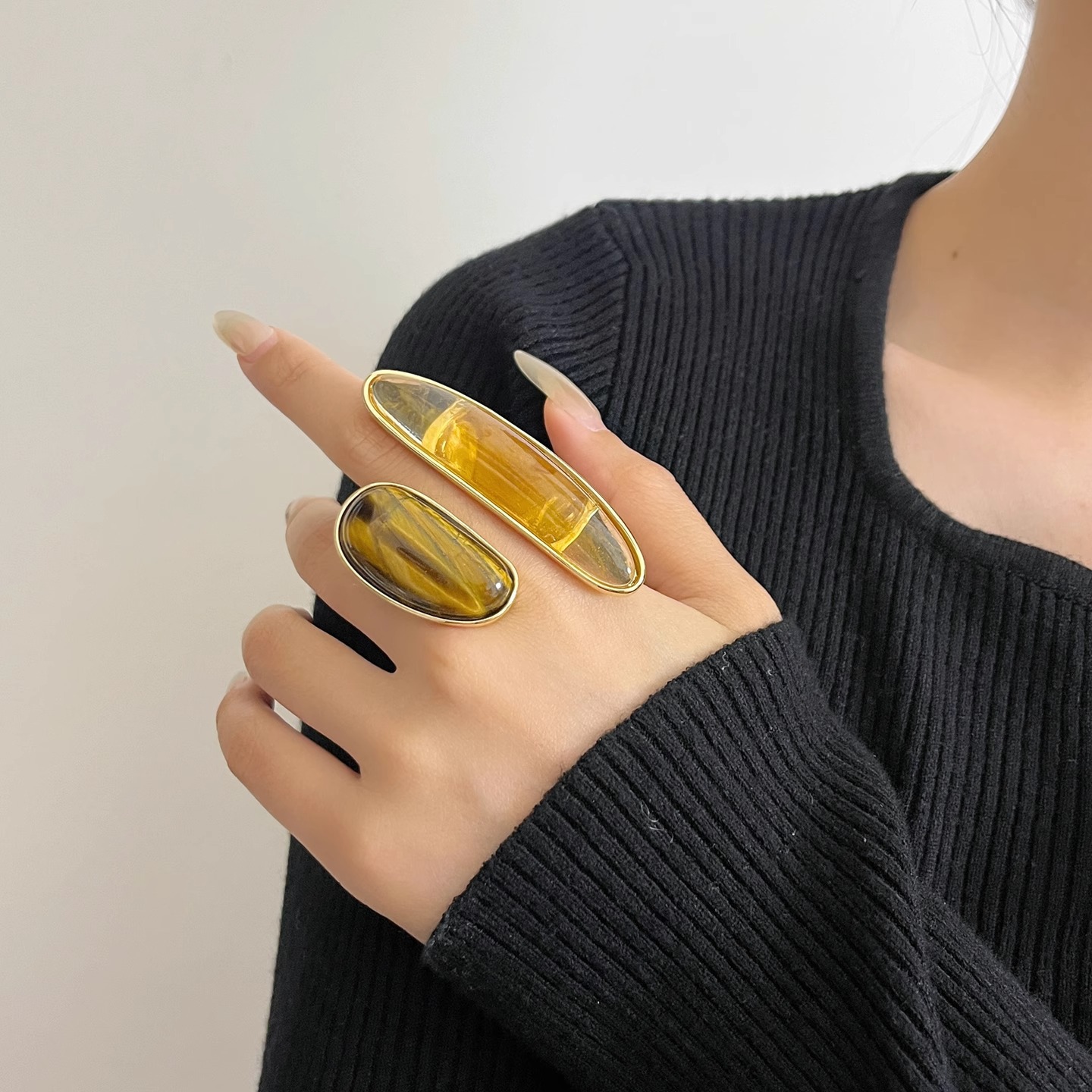 Original Design Asymmetrical Natural Tiger Eye Stone Open Ring Accessible Luxury Niche High-End Exaggerated Large Gemstone Ring