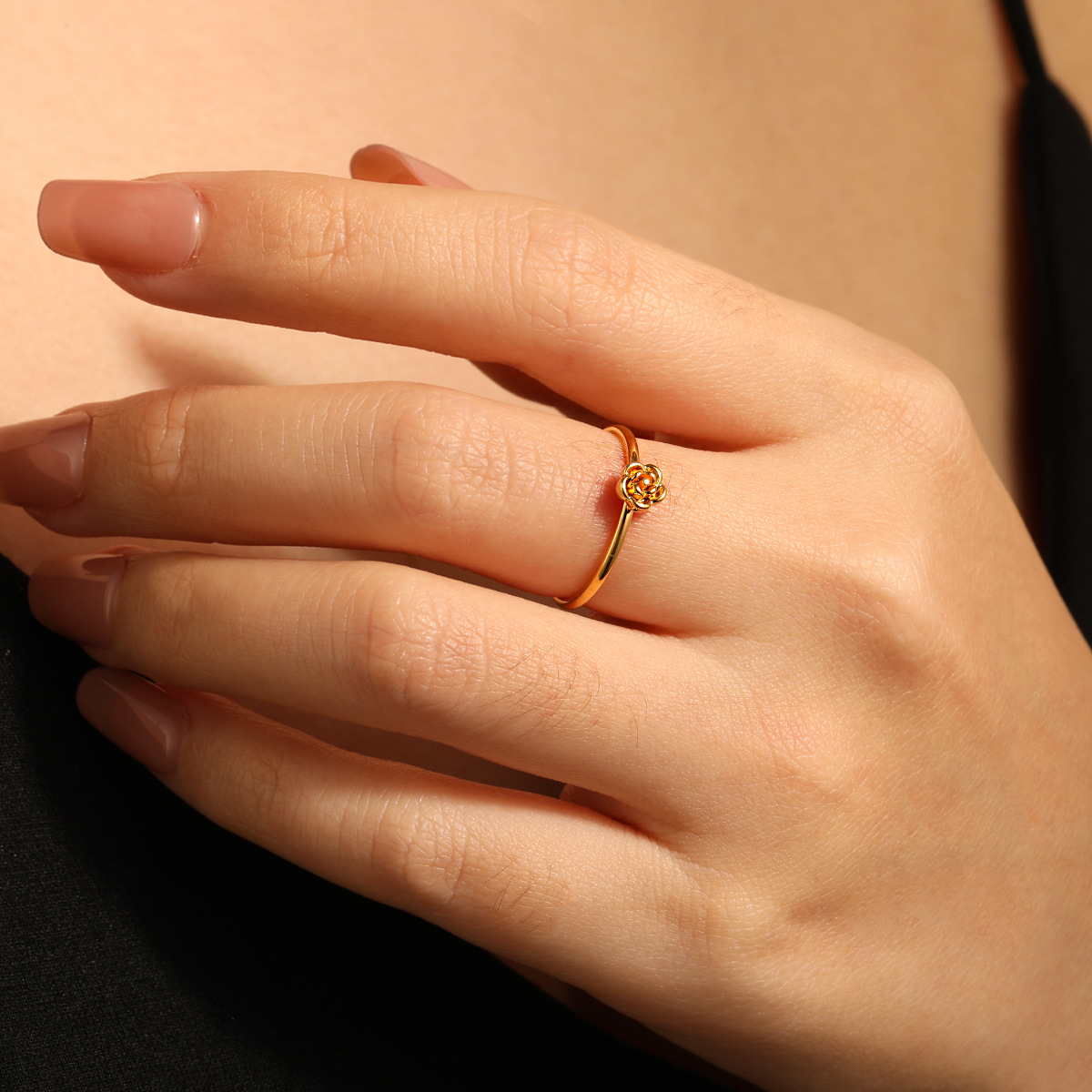 Korean Style New Ins Style Fashionable Simple Rose Flower Ring Women's Niche High-grade Titanium Steel Gold Plated Ring