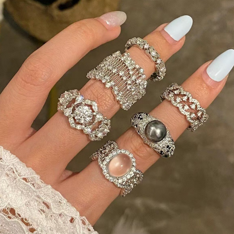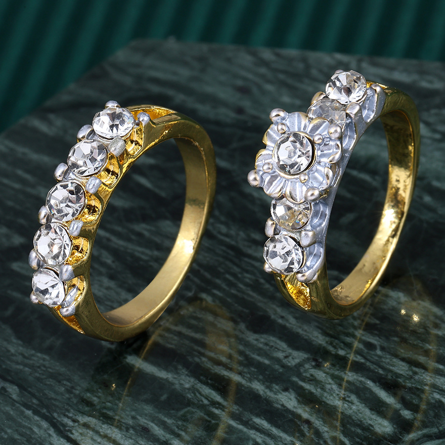 Huajie European and American Cross-Border New Retro High-End Niche Design Fashion Diamond Two-Piece Ring Personalized Creativity