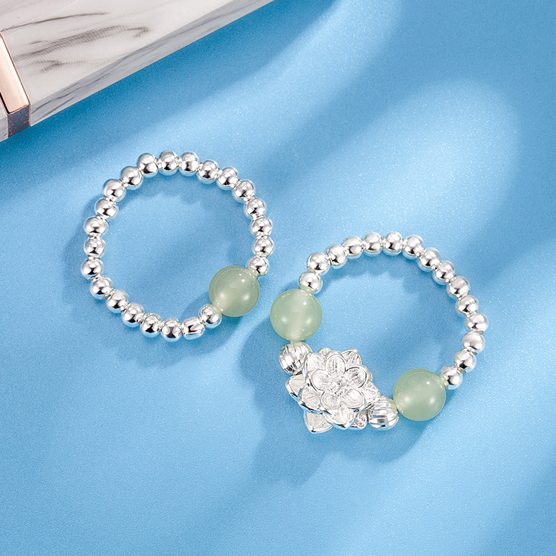 Hotan Jade Lotus Ring Women's Niche Design Light Luxury High-end Beaded Finger Ring Fashion Personalized All-match New Style