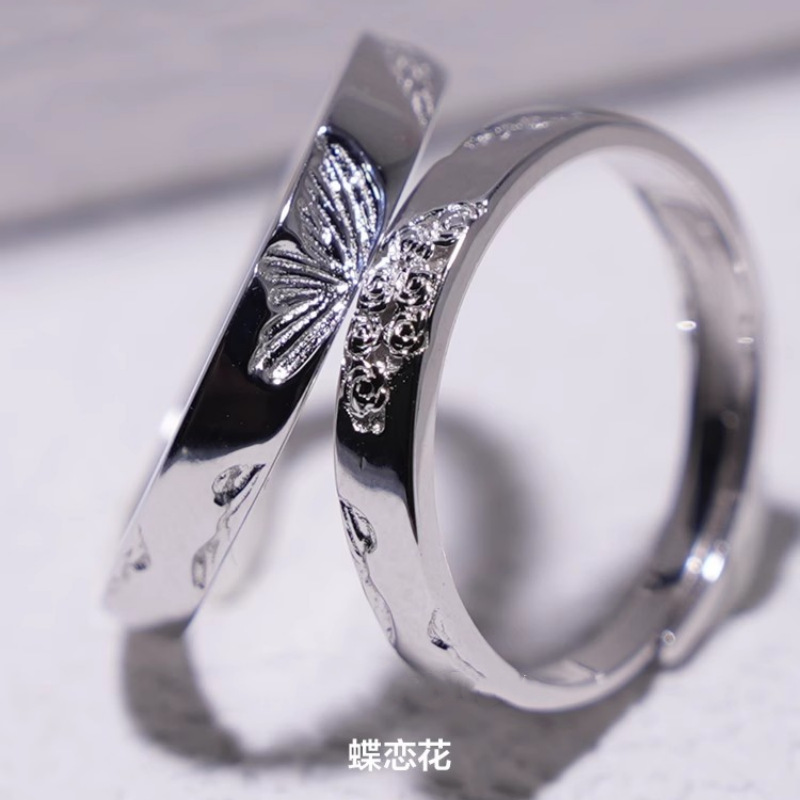 Free and Romantic Couple Ring New Niche Design Light Luxury High-end Butterfly Love Flower Ring Tanabata Gift