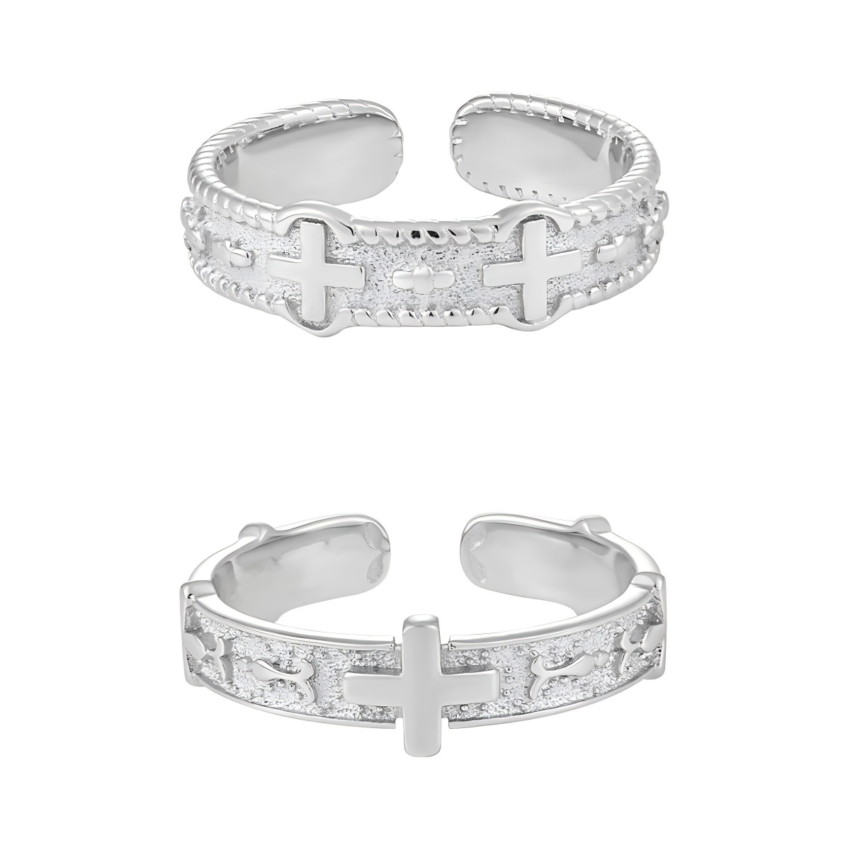European and American Cross-Border Ins Niche High-End Carved Cross Plain Ring Fashion Light Luxury Non-Fading Open Ring for Women