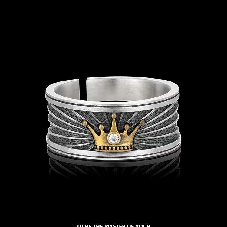 Vintage Antique Opening Ring Men's Fashionable Hip-Hop American Crown High Street High Sense Punk Motorcycle Accessories