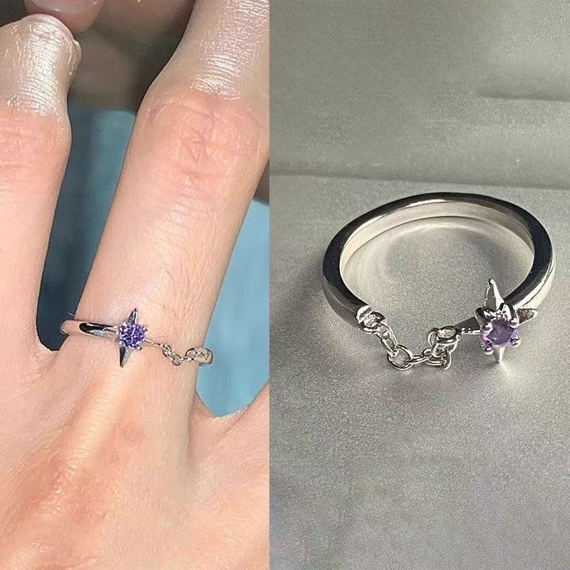 "Purple Aurora" Exquisite Purple Zircon Four-Pointed Star Chain Ring High-End Niche Design Ring New Style