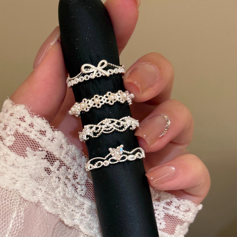Korean Aesthetics~Lace Heart Ring Women's Niche Design Accessible Luxury High-End Index Finger Ring 2025 New Ring
