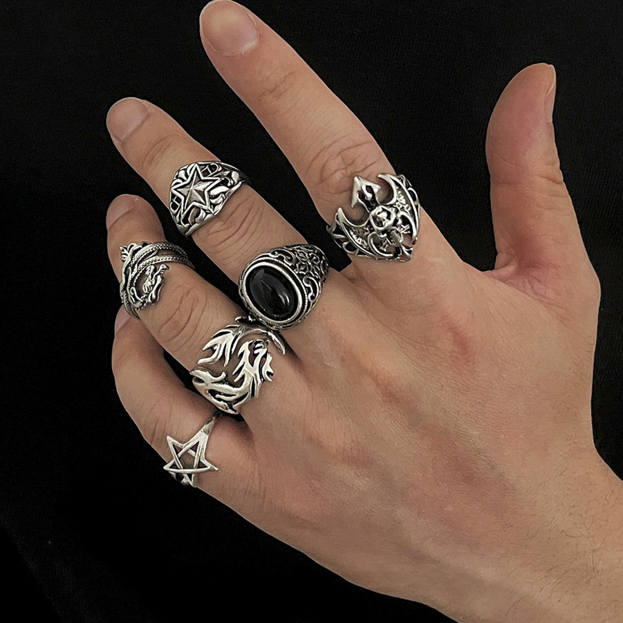 European and American Punk Gemstone Skull Ring Set Men's High-End Hip-Hop Niche Dragon-Shaped Ring Cross-Border Men's Hand Jewelry