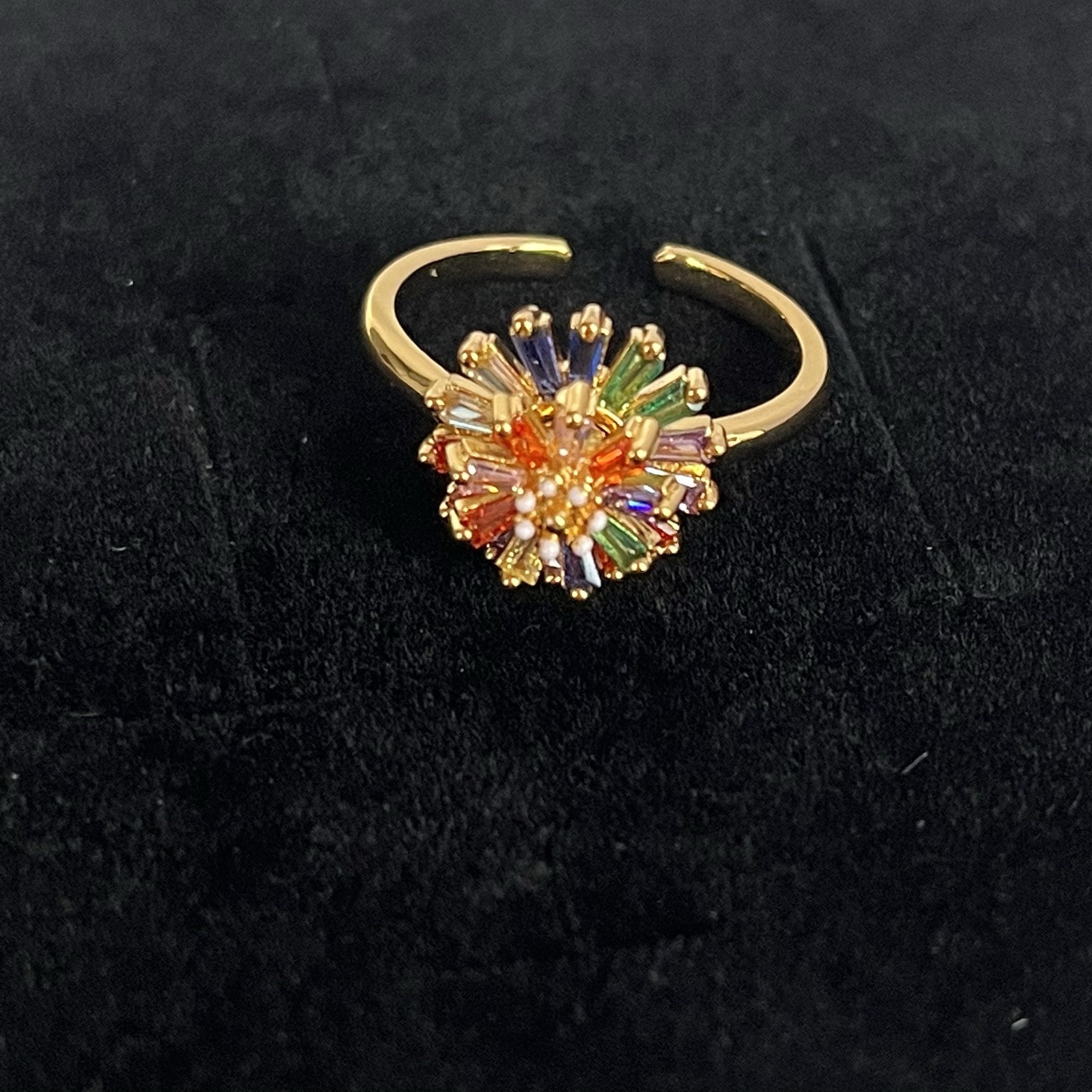New Rotatable Rainbow-Colored Zircon Sunflower Romantic French Exquisite Fashion Small Ring Versatile Light Luxury Ring