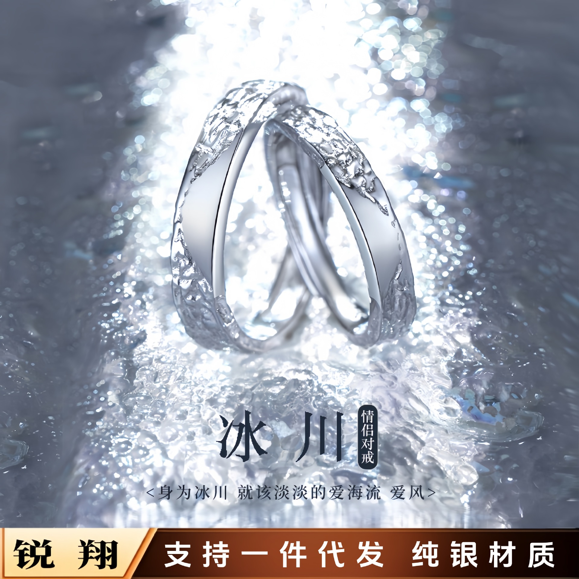 S999 sterling silver glacier ring luxury element ring senior niche design men and women open couples silver ring gift