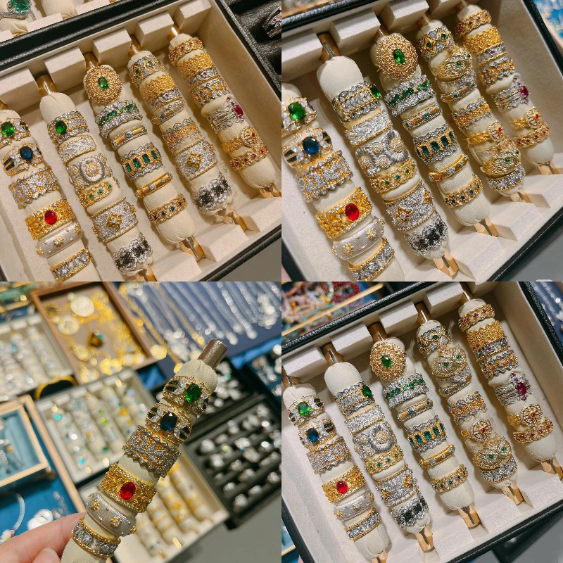 Second-Hand Vintage Diamond Wide-Brimmed Ring Retro Palace Style Index Finger Ring Accessible Luxury High-End Jewelry Wholesale for Women