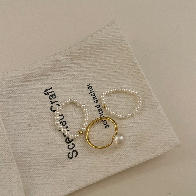 High-Gloss Accessible Luxury Mini Pearl Beaded Elastic Rope Ring, Retro Elegant Freshwater Pearl Ring That Does Not Pick up the Hand Circumference