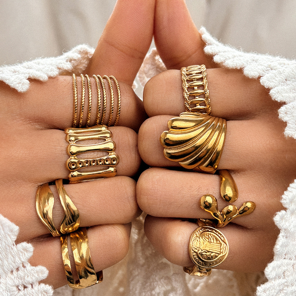 Personality Exaggerated Irregular Geometry Stainless Steel Open Ring suit Simple Metal Handwear All-match High-end Sense