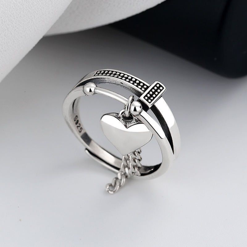 European and American Cross-Border New Products White Copper Tassel Love Ring Light Luxury Design Fashionable and Exquisite Index Finger Jewelry Manufacturer Wholesale