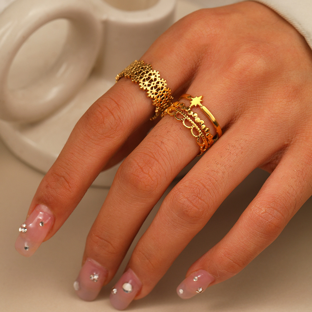 Stainless steel ring women's opening does not fade elegant eight mans star palace wind hollow ring cross-border jewelry wholesale