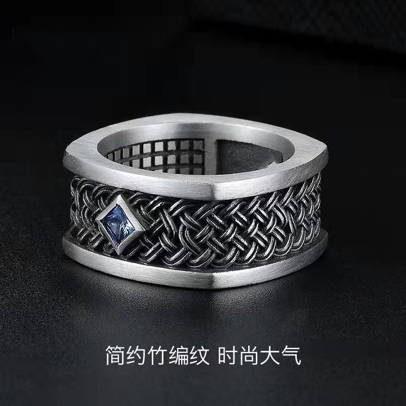 Chiba 925 Silver Ring Men's Trendy Hip-Hop Retro Personalized Simple Domineering Single Ring Light Luxury National Style Square Ring