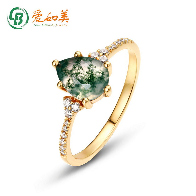 Personality Elegant Aquatic Agate Ring 925 Silver Light Luxury Green Moss Ring Titok Amazon Cross-border Exclusive