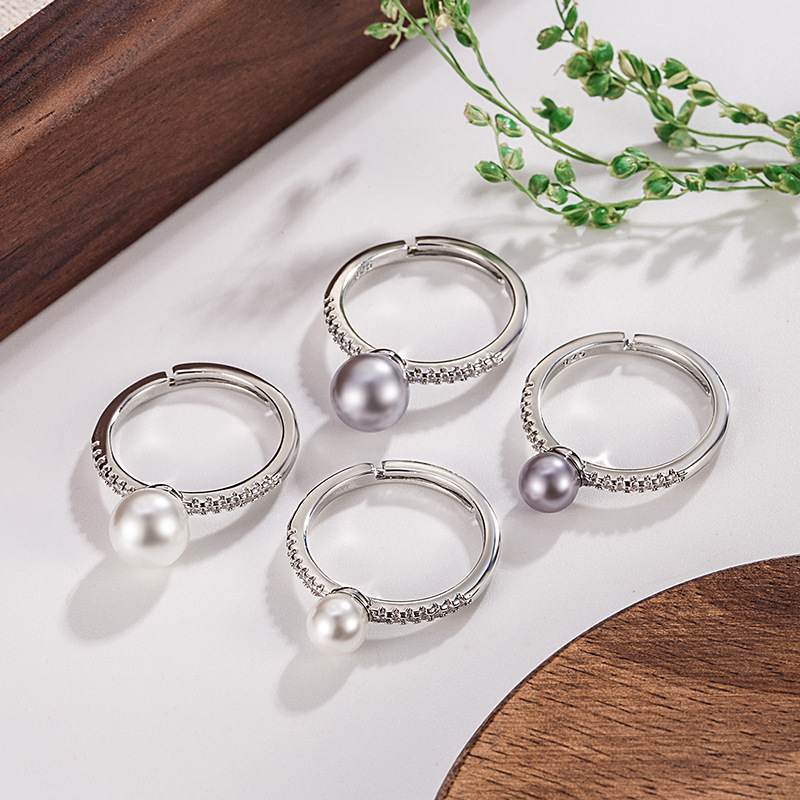 New pearl ring empty holder diy light luxury pearl ring holder female clip beads jade beads Amber open ring holder 8-9mm