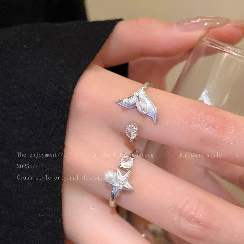 Super Fairy Ins Style Starfish Fish Tail Pearl Ring Women's New Summer Index Finger Ring Accessible Luxury Niche High-End Ring