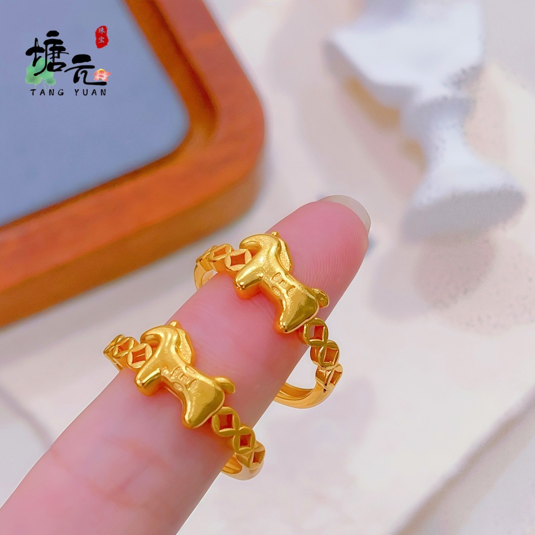 New Ancient Sand Gold Pony Ring Korean Style Personalized Simple Women's Open Ring Niche Design Hand Jewelry