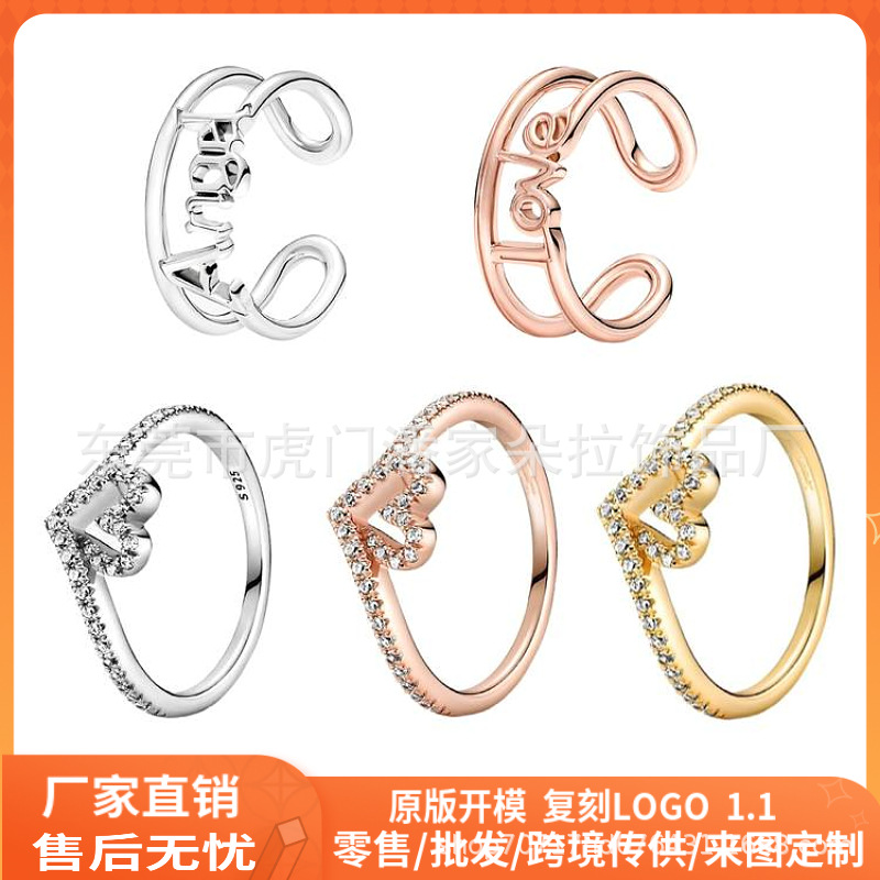 Panjia White Copper S925 Silver Plated Open Rose Gold Ring with Diamond Heart-shaped Ring for Girlfriend Gift