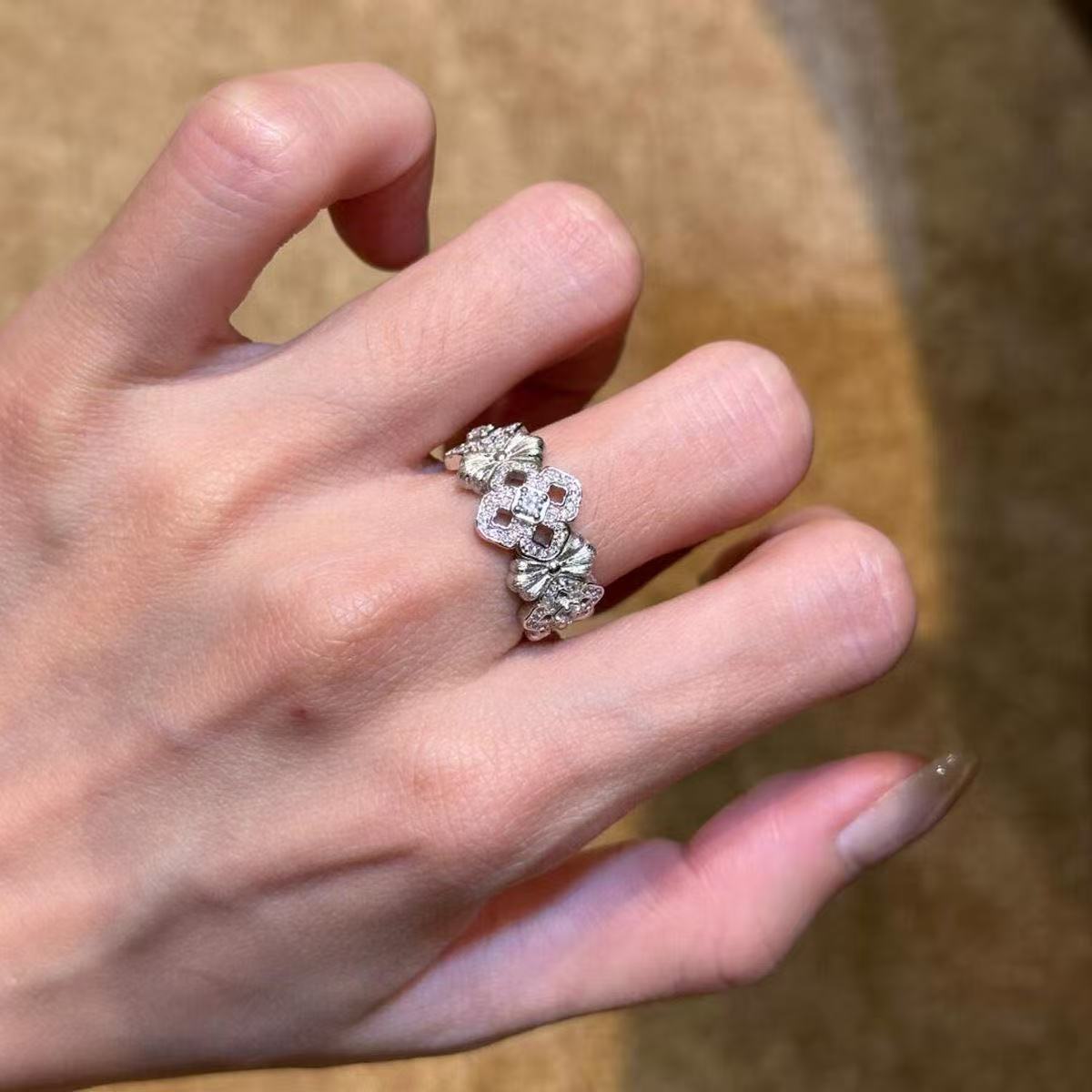Old Money Style Silver Micro-Paved Zircon Cut Out Carved Open Ring Niche Design Retro Accessible Luxury High-End Jewelry