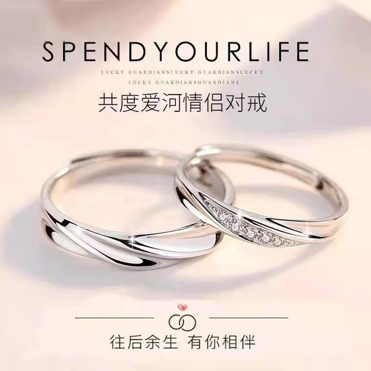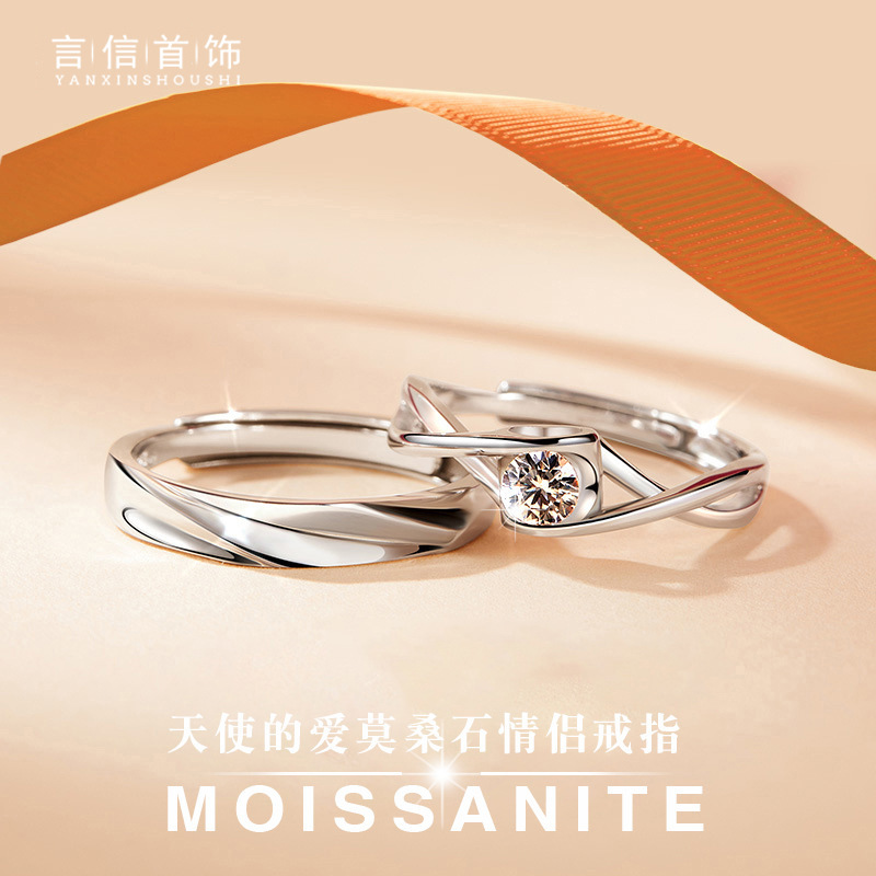 s925 Sterling Silver Angel Love Diamond couple ring men and women ins points light luxury niche live supply wholesale