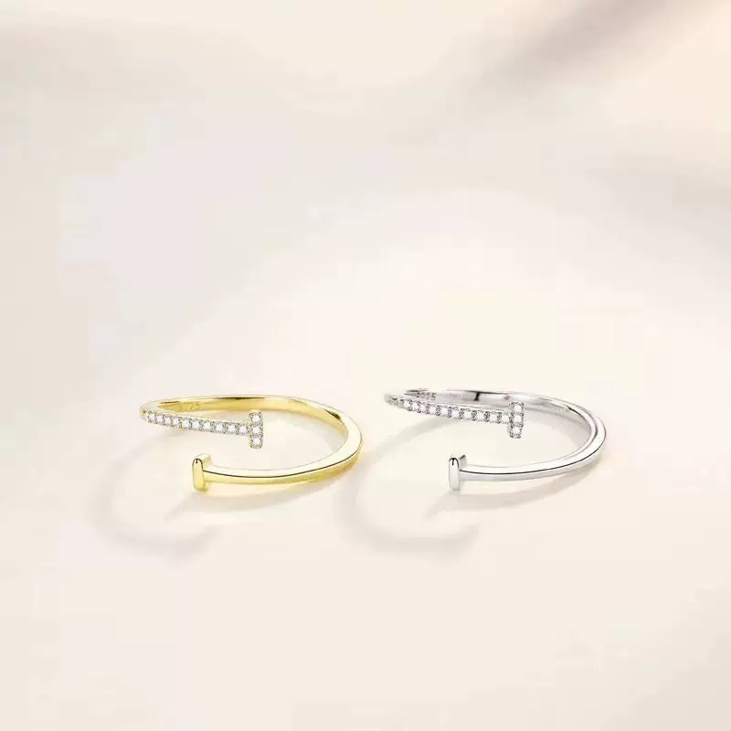 Cross-border foreign trade new double T opening ring women's diamond simple design ins temperament personality jewelry ring