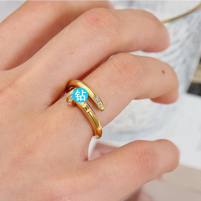 Fashion Card Home High Version Nail Ring Female Niche Electroplated 18K Gold High-grade Stainless Steel Ring