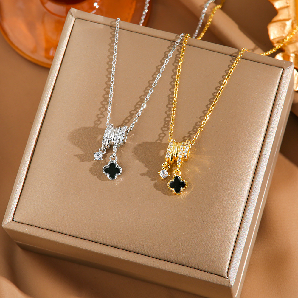 Cross-border Hot Sale Four-leaf Clover Titanium Steel Necklace Women's High-grade Light Luxury Simple All-match Micro-inlaid Zircon Chain Jewelry