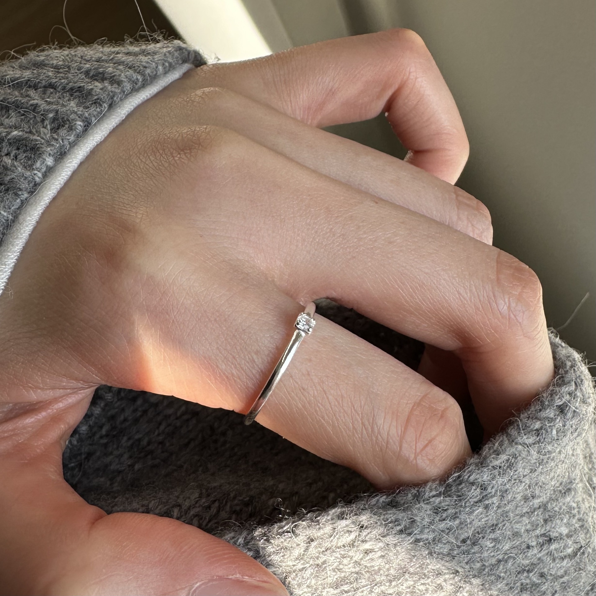 925 Sterling Silver Square Zircon Ring Women's Simple Compact Mini Personality Light Luxury Exquisite Open Ring 0052B