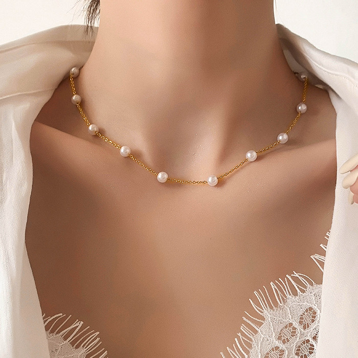 French style light luxury pearl necklace female niche design retro starry clavicle chain New Fashion ins style fashion