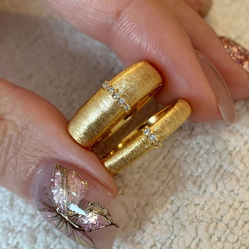 Vintage Wire-drawing Ring Women's Summer Italian Antique Niche High-grade Simple Wide and Narrow Edition Food Ring 2024 New Style