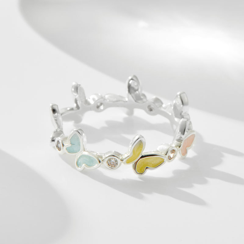 Fingertip Fairy Dream Enamel Oil Drop Colorful Butterfly Open Ring Fashionable Versatile Adjustable Index Finger Ring