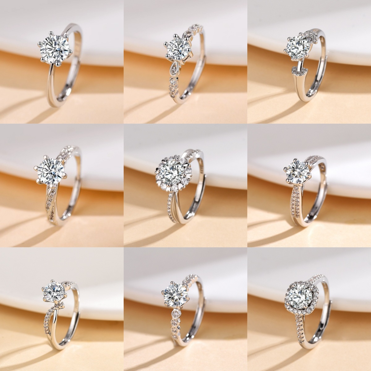 Live classic imitation moissanite ring women's round square bag 1 karat zircon opening adjustable cross-border wholesale