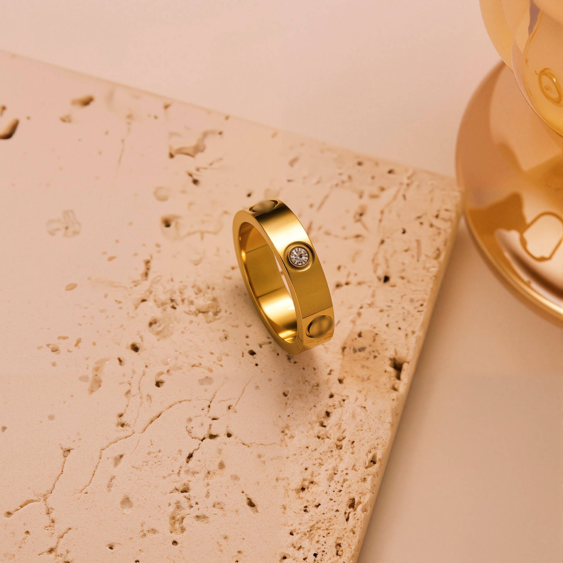 Cross-border hot-selling fashion simple three-diamond three-nail titanium steel 18k gold ring light luxury temperament ins ring bracelet wholesale
