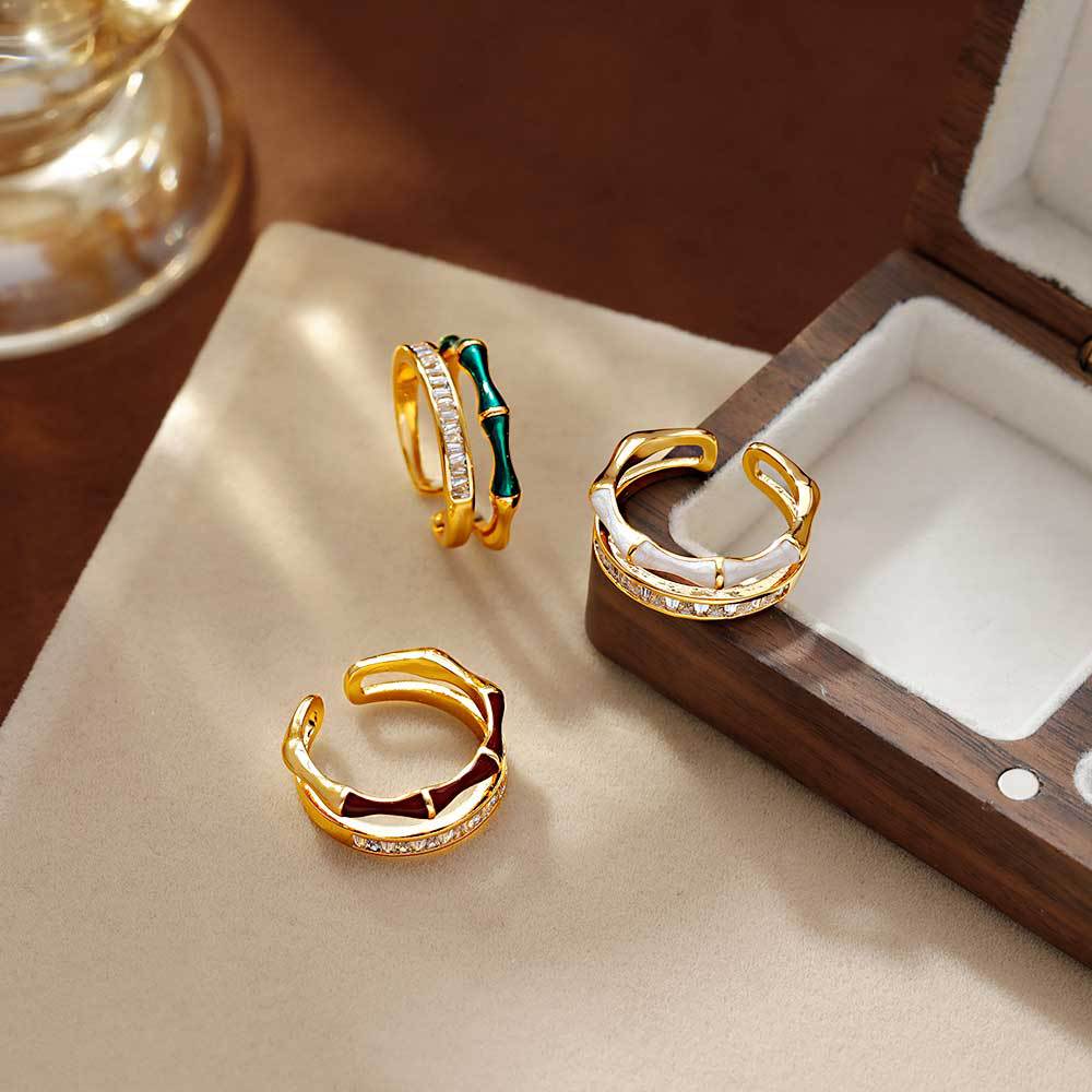 Double Layer Enamel Zircon Open Ring Ins Trendy Simple Personalized Fashion Cold Style Light Luxury Niche Exquisite Ring