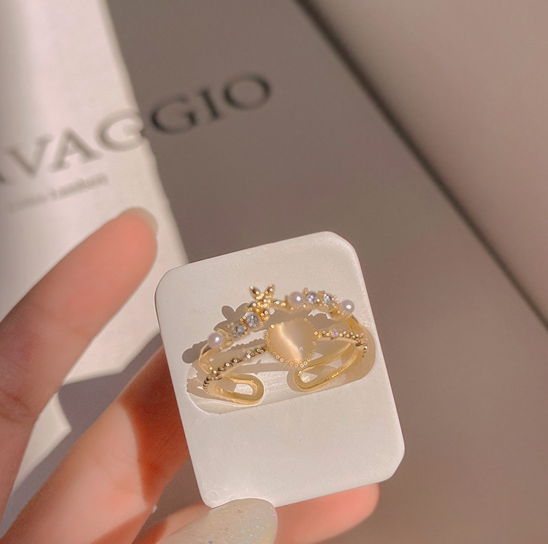 Cat's Eye Open Ring Retro Niche Design Japanese Light Luxury Index Finger Love Girl