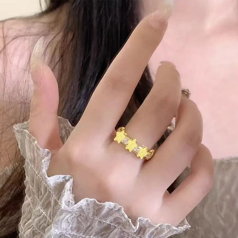 Cross-border foreign trade new double T opening ring women's diamond simple design ins temperament personality jewelry ring