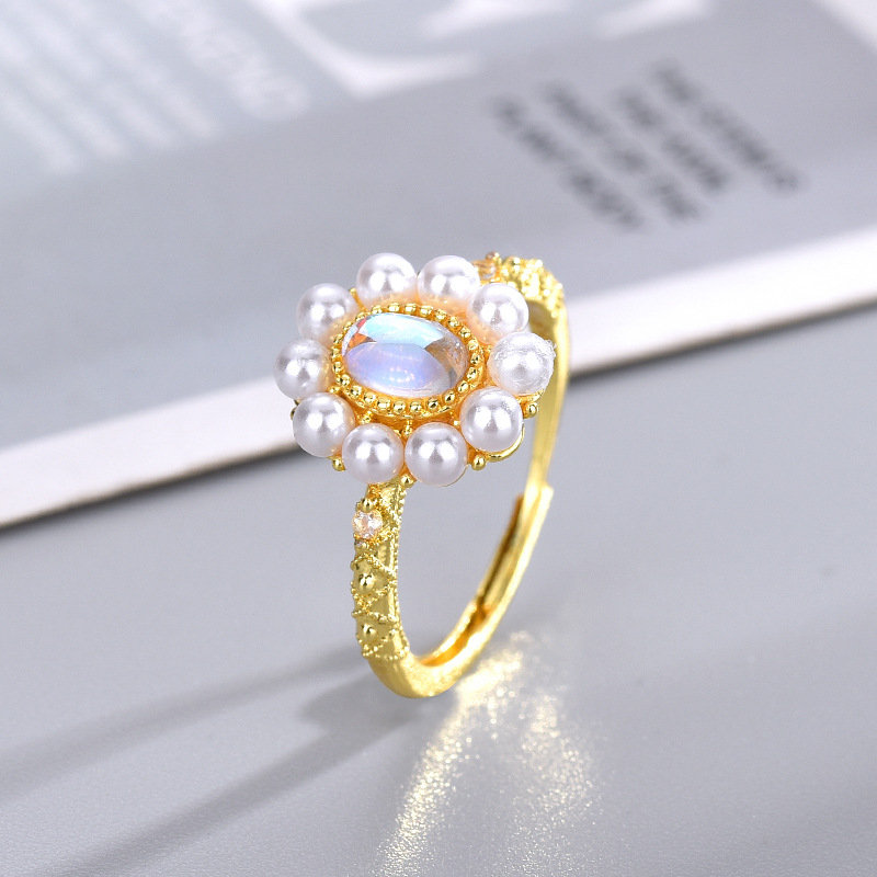 Internet Celebrant Live Selling Inlaid Natural Moonstone Ring Women's Opening Adjustment Fashion High-end Retro High-end Exquisite