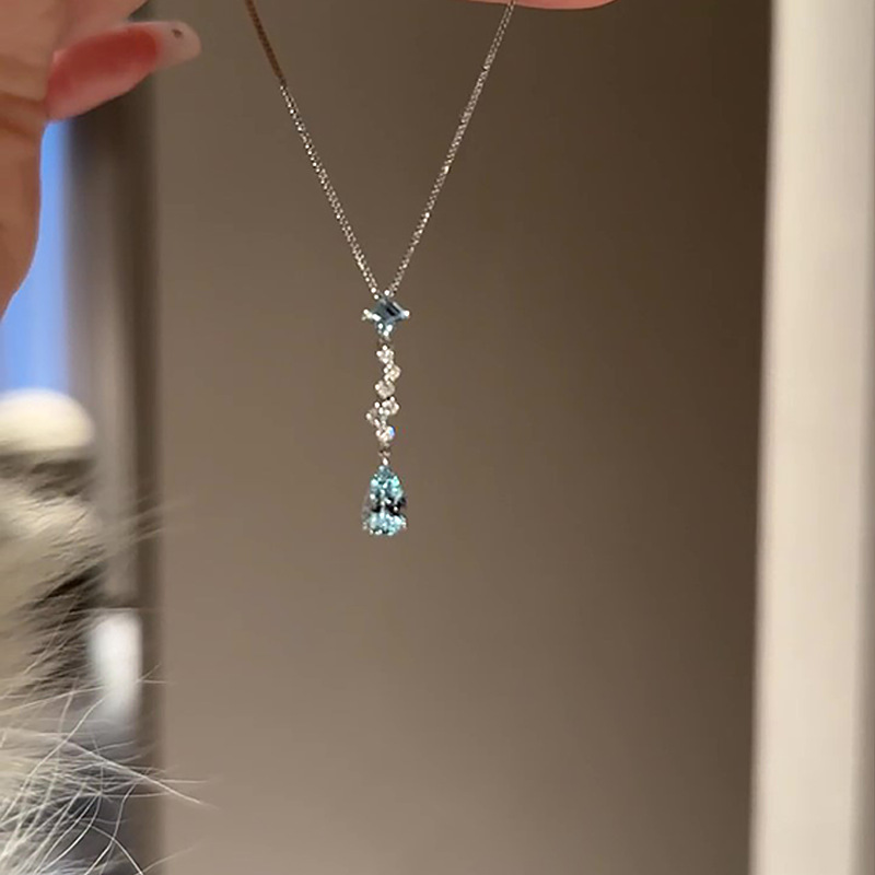 Blue water drop tassel necklace women cool feeling exquisite fashion temperament titanium steel non-fading clavicle chain jewelry wholesale