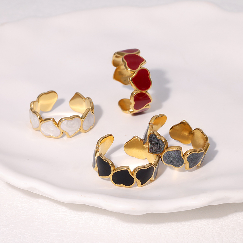 Cross-Border Hot-Selling Stainless Steel Love Dripping Oil Open Ring for Women, Non-Fading Niche High-End Titanium Steel Ring Bracelet