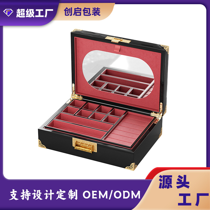 New Jewelry Box Gold-Edged Jewelry Storage Box Double-Layer Jewelry Display High-End Gift Box