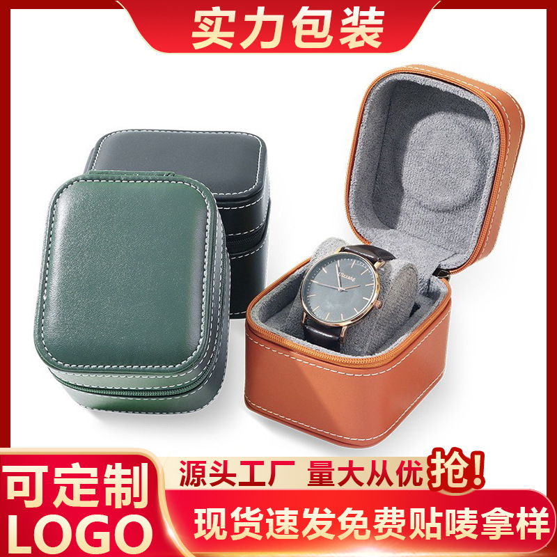 PU leather watch box men's watch box advanced sense single watch packaging box zipper type portable watch box cross-border