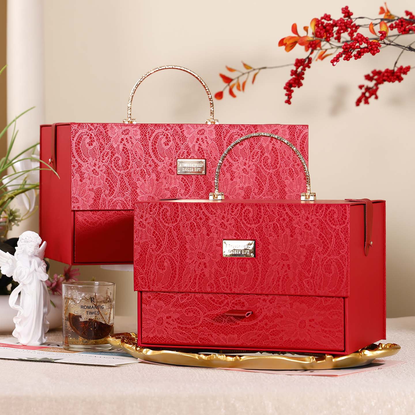 New High-End Red Double-Layer Drawer Box Wedding Candy Gift Box Suitcase Valentine's Day Gift Box