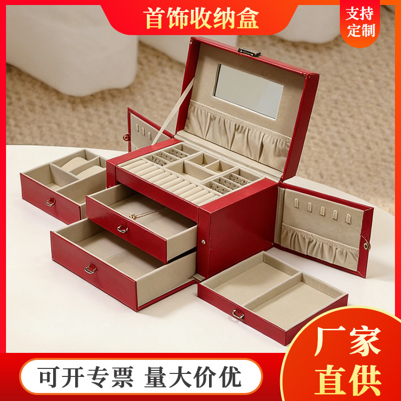Red Three-Layer Jewelry Box with Lock for Housewarming, Wedding and Newlywed Gifts for the Newlyweds, Exquisite Jewelry Storage Box with High-End Feel