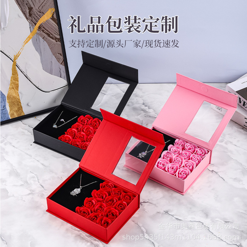 Factory Wholesale Flip Jewelry Box Earrings Necklace Box Advanced Sense Jewelry Box Valentine's Day Gift Box Birthday Gift Box